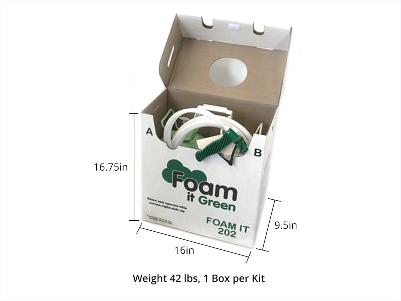 These kits contain everything you need to spray the foam. The pressurized nitrogen makes the foam come out of the tanks, so you don’t need an external power source. This makes Foam it Green kits portable and disposable.